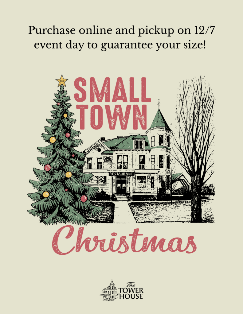 We also will have more of our exclusive “Small Town Christmas (Tower House)” apparel available on the link- youth, men & women sizes! Order now and we will have it ready for pickup at the event! ![]()